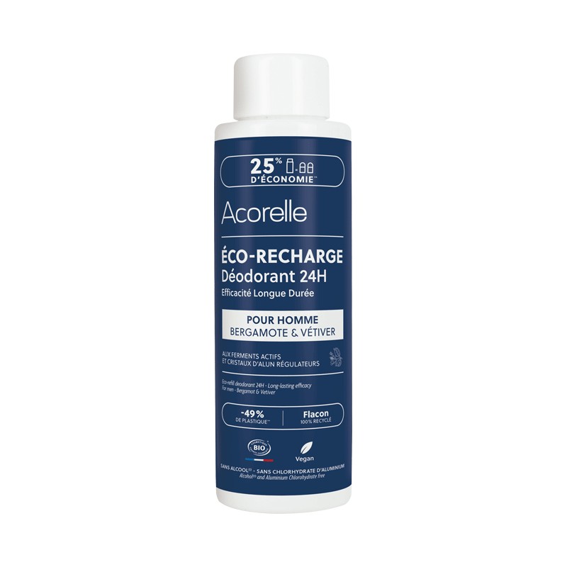 Das erste Deodorant für Männer von Acorelle – jetzt Realität! Diese maskuline Version wird in einer eleganten, nachtblauen Flasche aus recycelbarem und nachfüllbarem Kunststoff angeboten. Während einige Männer auch die blumigen und pudrigen Noten anderer Roll-ons schätzen, überzeugt diese Variante mit einem unwiderstehlichen Duft aus Bergamotte, Ingwer und Vetiver – holzig und würzig.