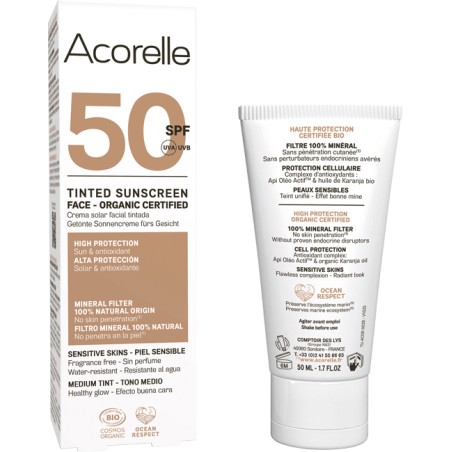 Die getönte Sonnencreme für das Gesicht SPF50 in der Nuance Medium bietet einen hohen UVA- und UVB-Schutz dank eines mineralischen Filters 100 % natürlichen Ursprungs, der sich ideal für empfindliche Haut eignet. Angereichert mit Bio-Karanjaöl und dem patentierten Api Oléo Actif™ hilft sie, vorzeitiger Hautalterung vorzubeugen und schützt die Haut vor äußeren Einflüssen.